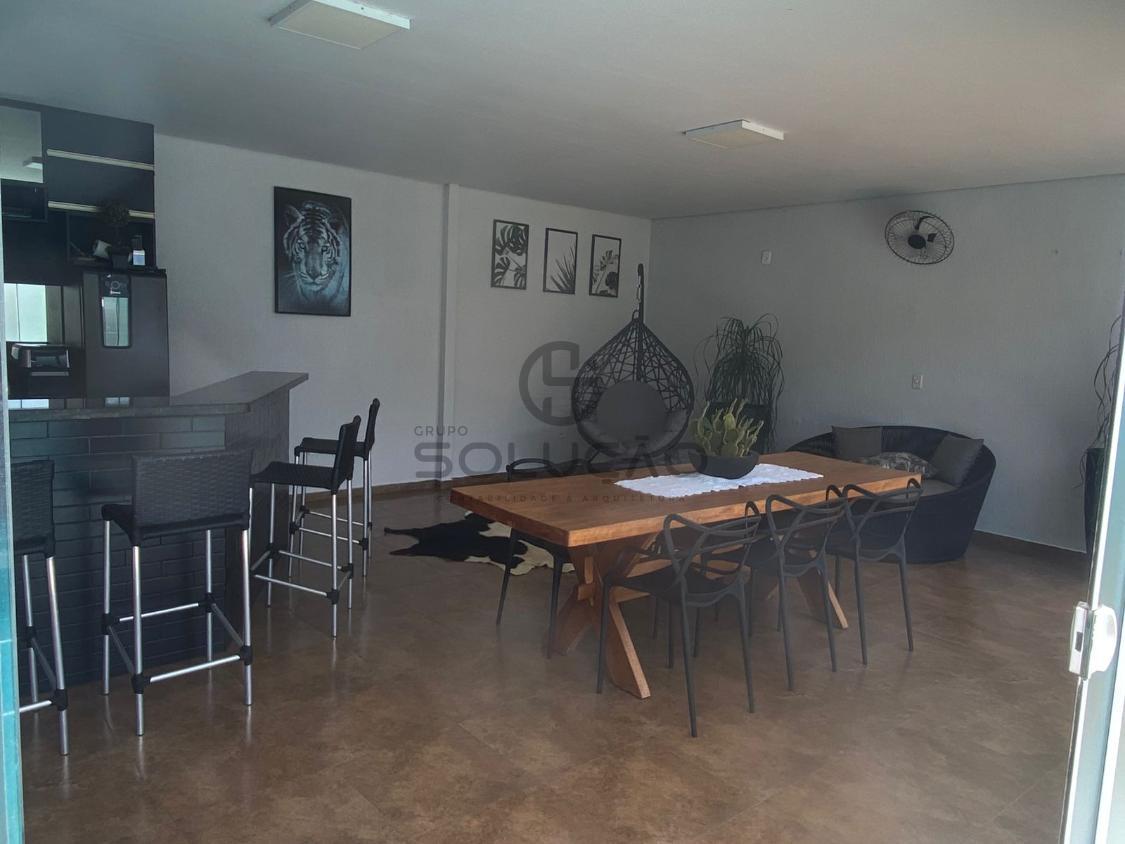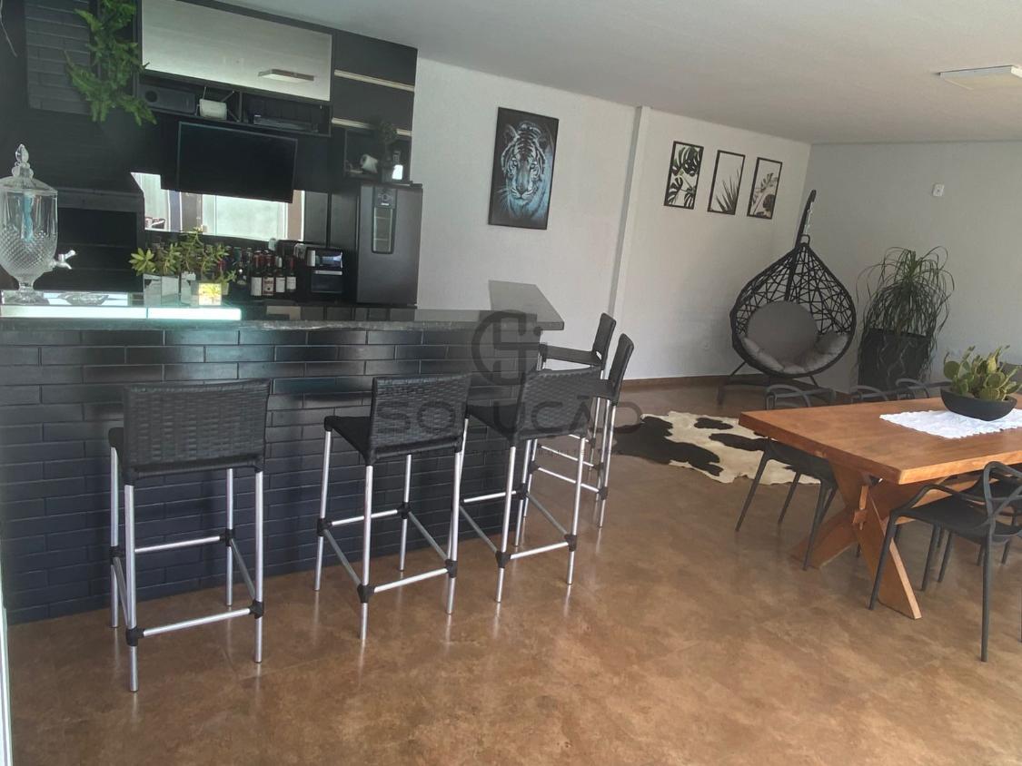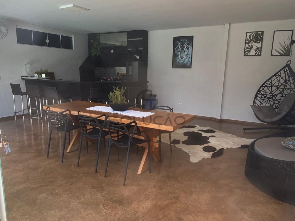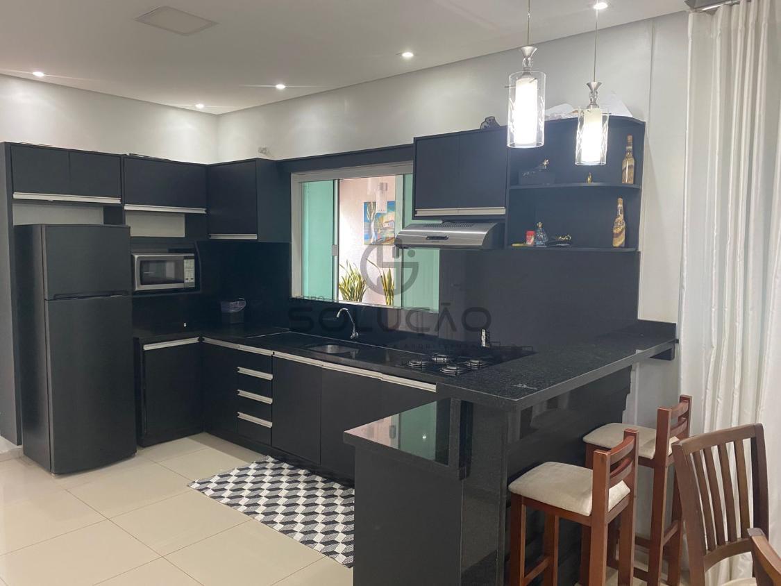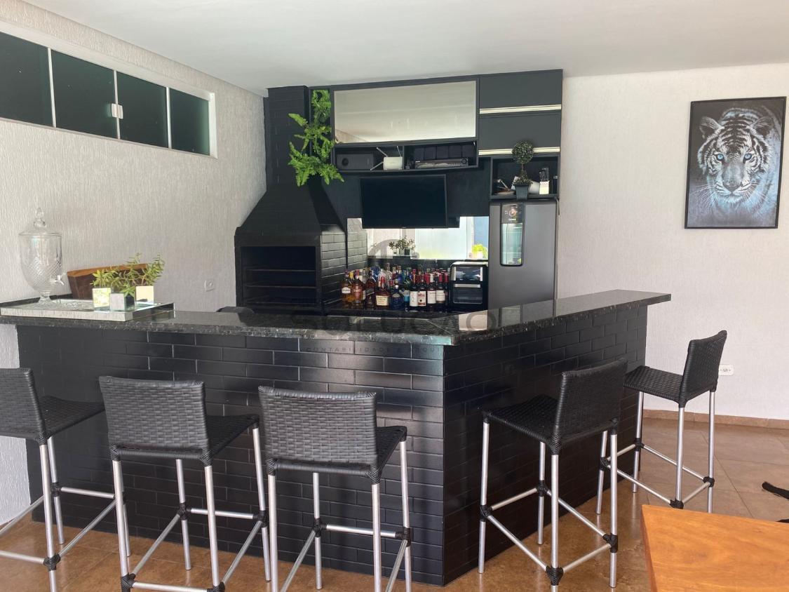 com garagem para 02 veículos, sala de estar, sala de tv, cozinha, sala de jantar, 01 suíte, 02 quartos, banheiro social, Jardim de inverno.