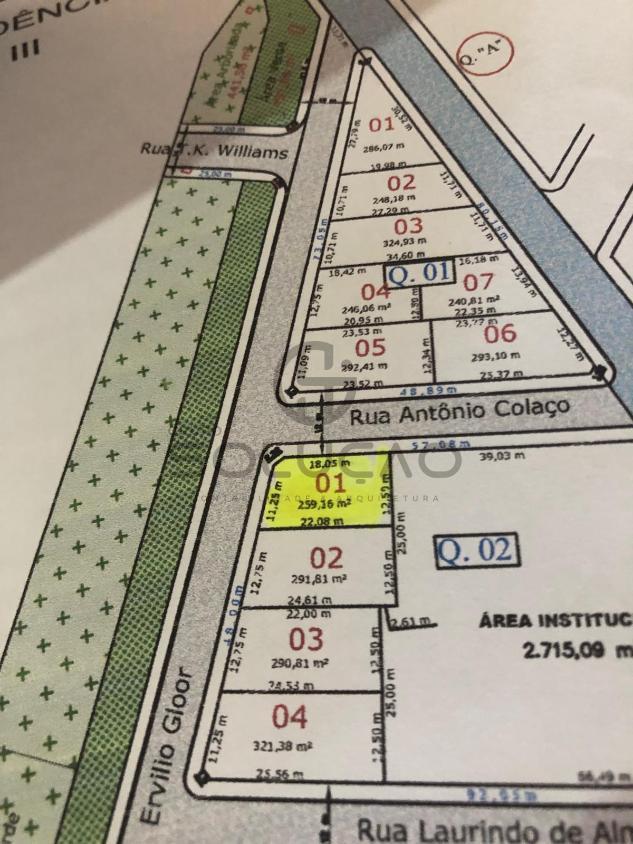 Lote Urbano coa área total de 259,16 m2 , pronto para construir , localizado em bairro nobre residencial com excelente valorização.